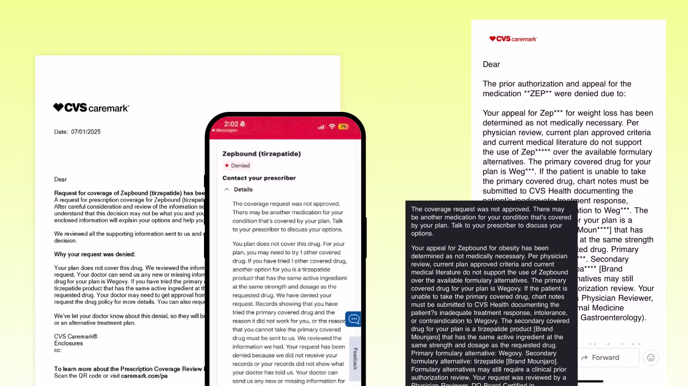 On July 1, CVS Caremark began forcing patients to switch from Zepbound to Wegovy – and we quickly took action to help folks fight back by appealing. With many patients protected by step therapy and non-medical switching laws, we were confident in their cases. The majority of these denials should have been overturned easily.