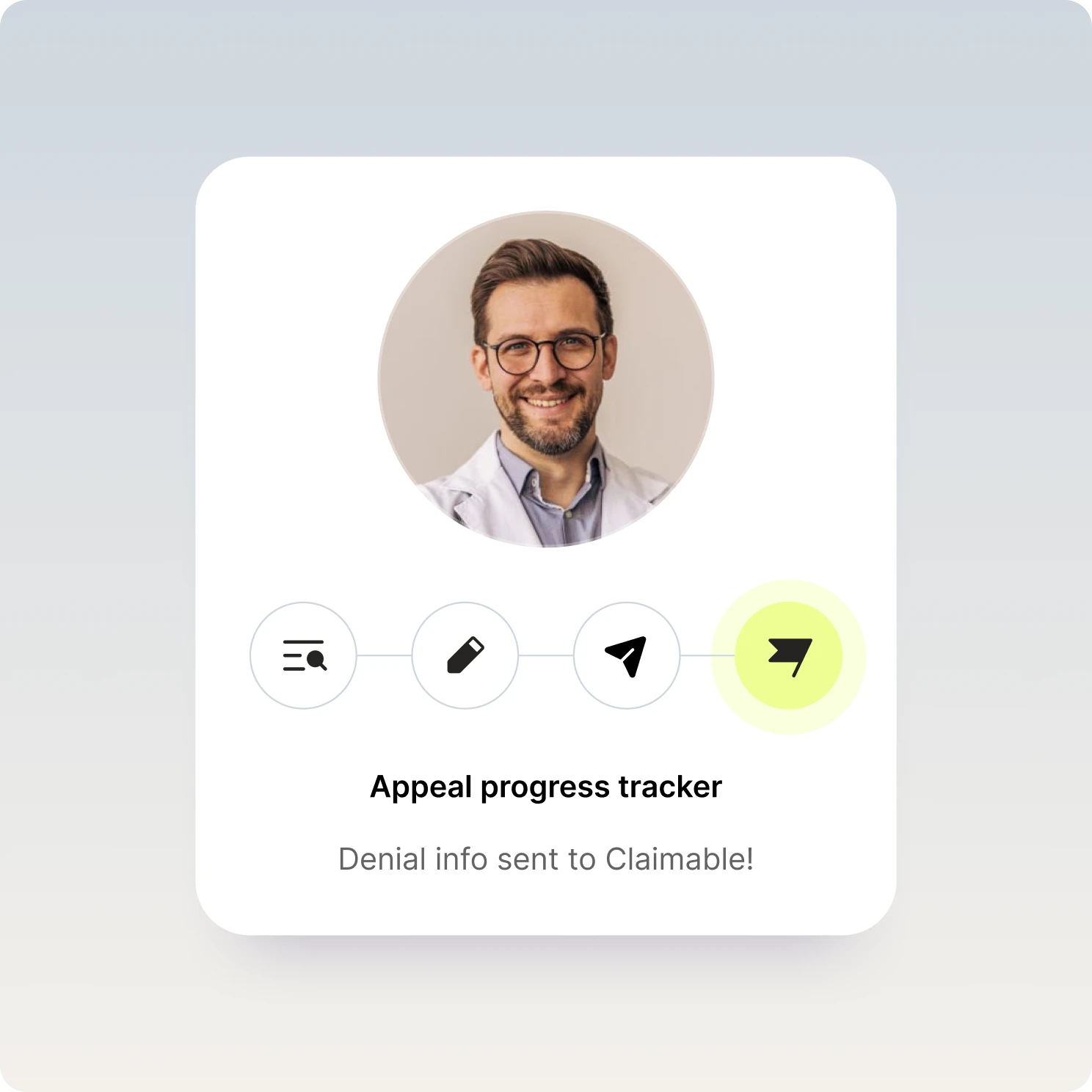 Fueled by a purpose-built database and proprietary AI model, Claimable appeals offer your patients the best and most likely path to coverage.