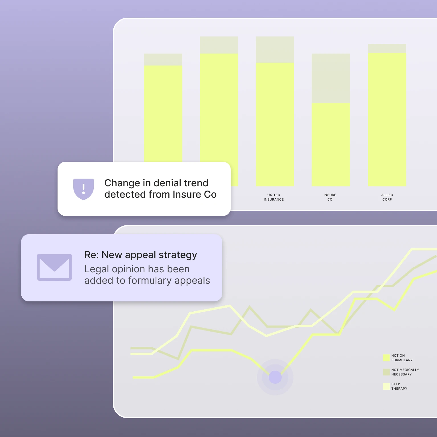Denial pattern intelligence: Claimable's aggregate analytics identify which insurers or PBMs deny most frequently, for which indications, using which denial reasons, and with what success rates when appealed. This transforms contract discussions from theoretical debates about coverage policy to fact-based conversations about actual insurer behavior.