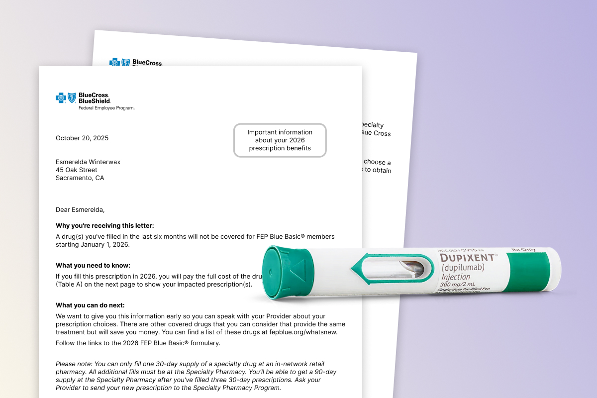 In early November, many FEP Blue members opened a letter saying Dupixent won’t be covered next year. The options? Switch to an alternative medication, or pay full price.